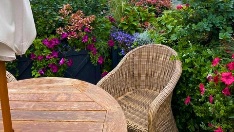 На фоне изумрудного газона мы создали буйство цветников и пышной зелени, оформив сад в изящном пейзажном стиле