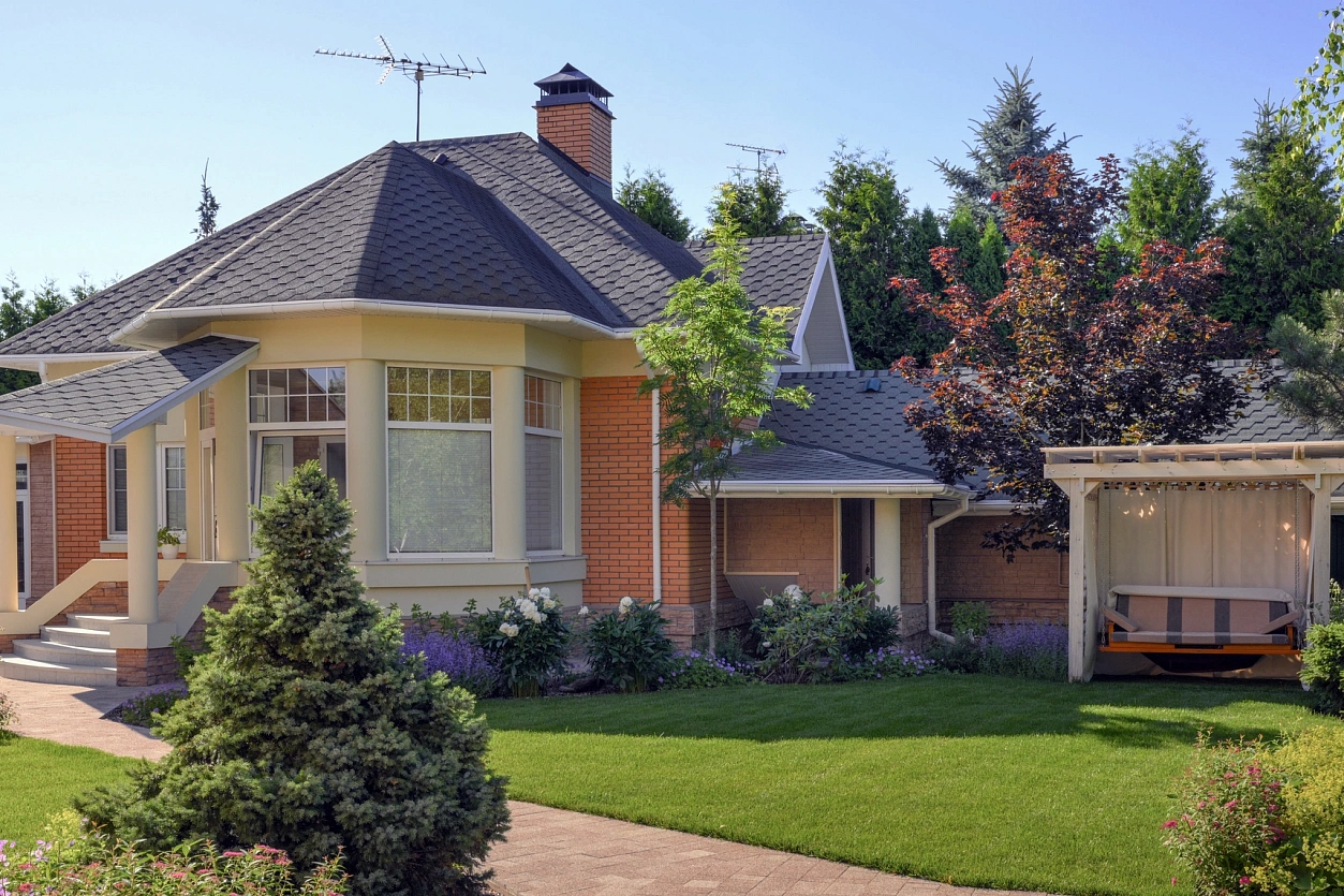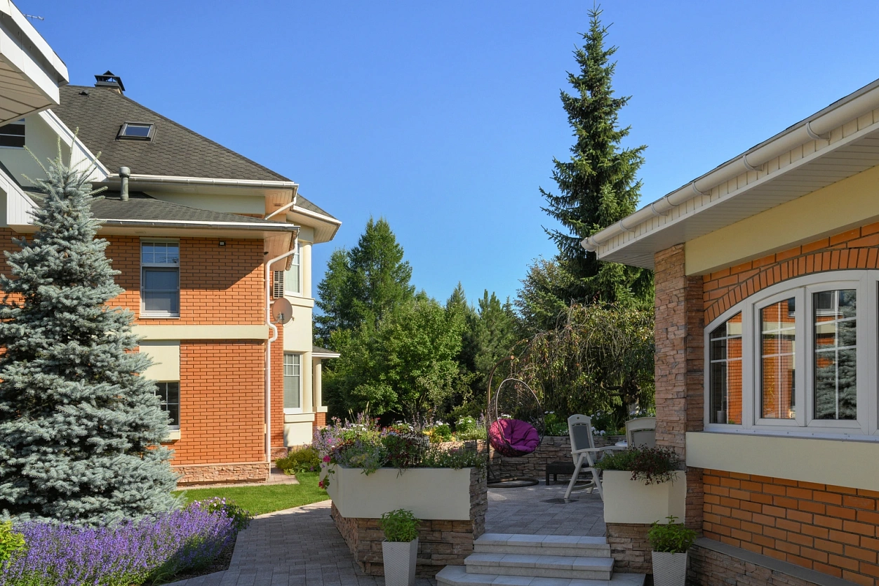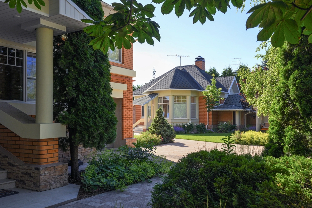 В 2023 году в наше бюро обратился заказчик с просьбой — создать современный сад, который бы гармонично вписался в окружающий коттеджный ландшафт и сохранил существующие крупные растения.