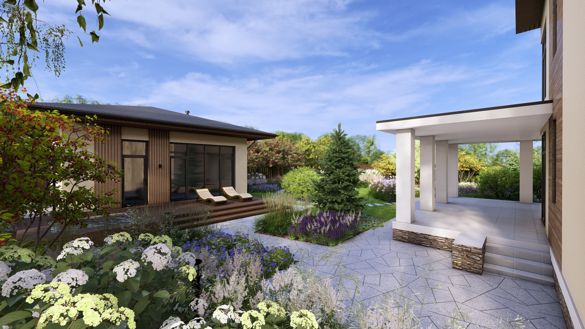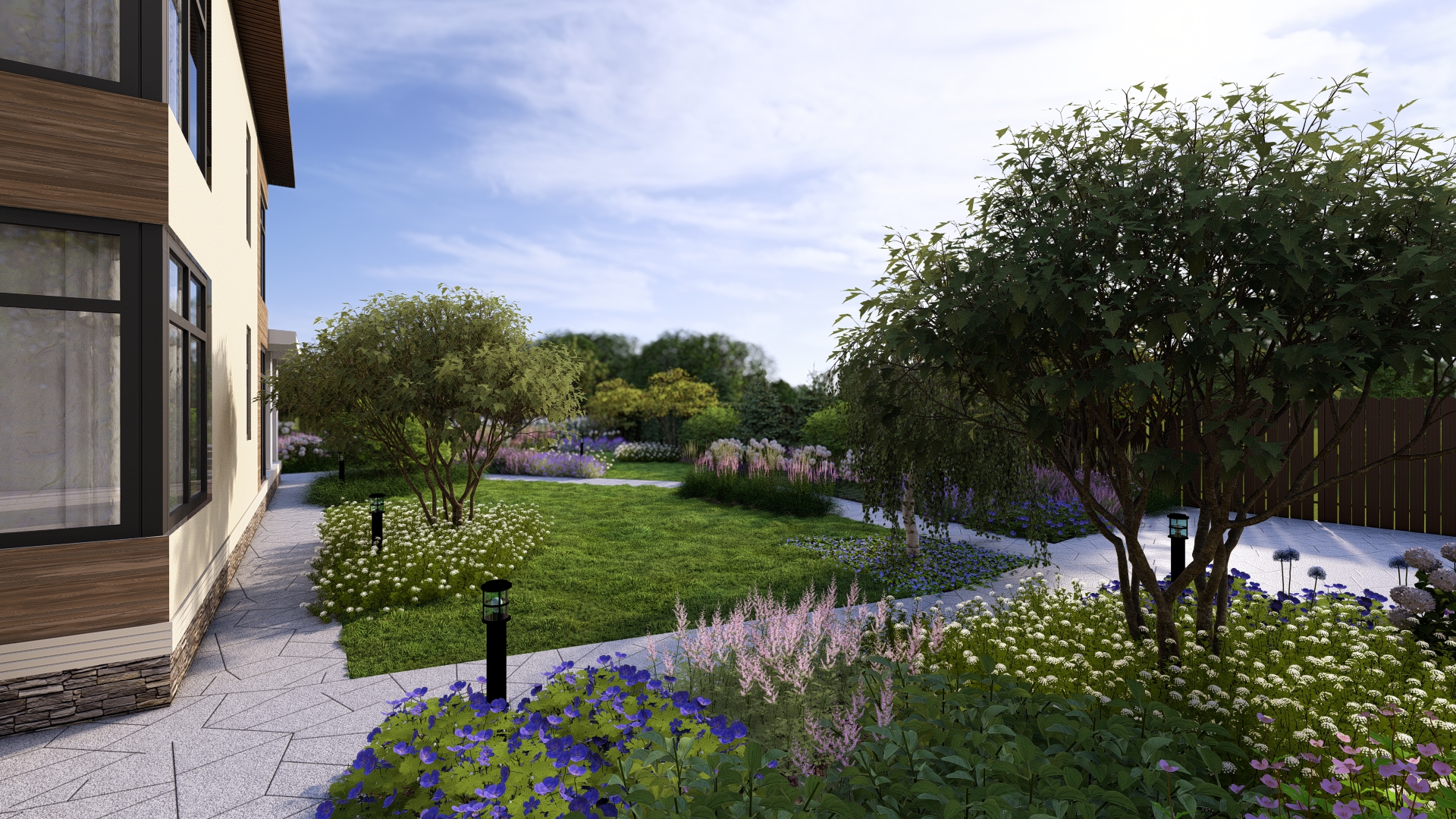 Сад был полностью спроектирован и реализован нами: от генерального плана до посадок.
