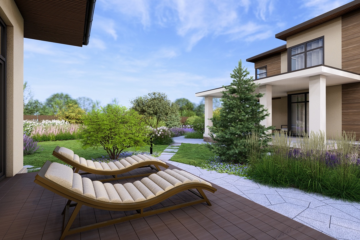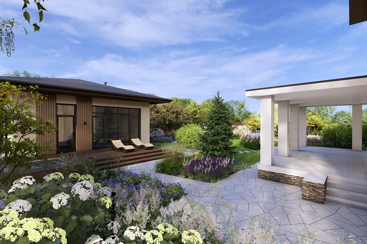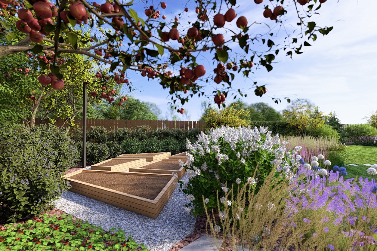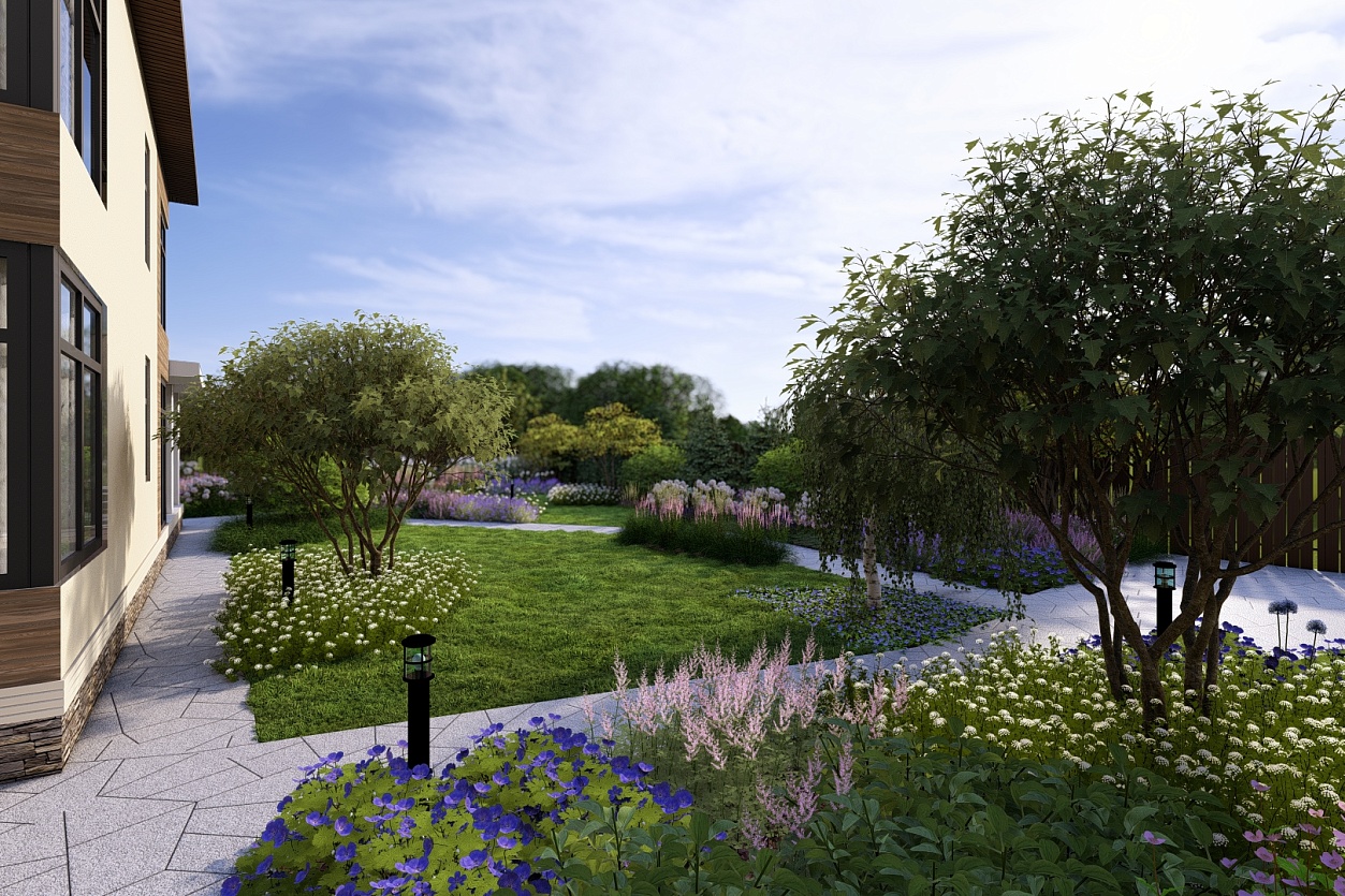 Сад был полностью спроектирован и реализован нами: от генерального плана до посадок.