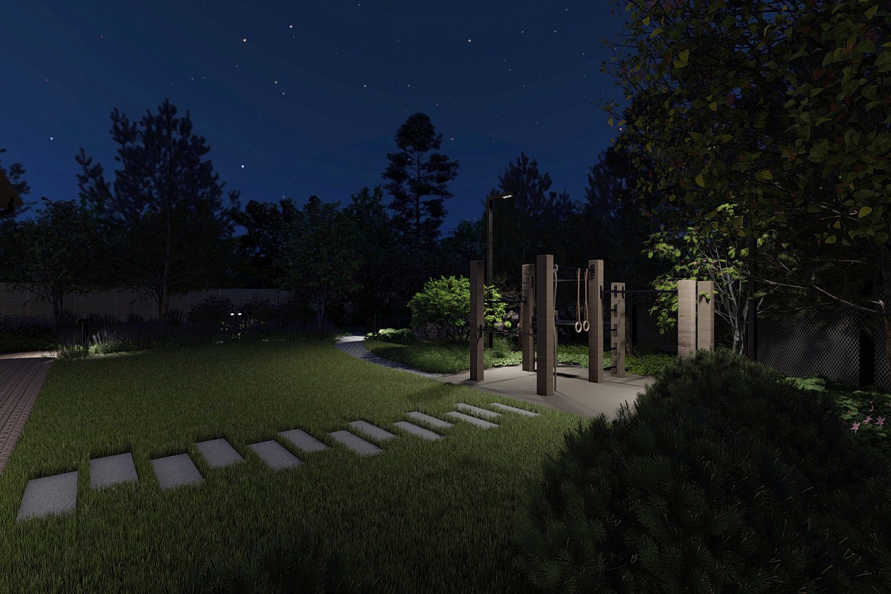 спроектировали освещение, дорожно-тропиночную сеть.
