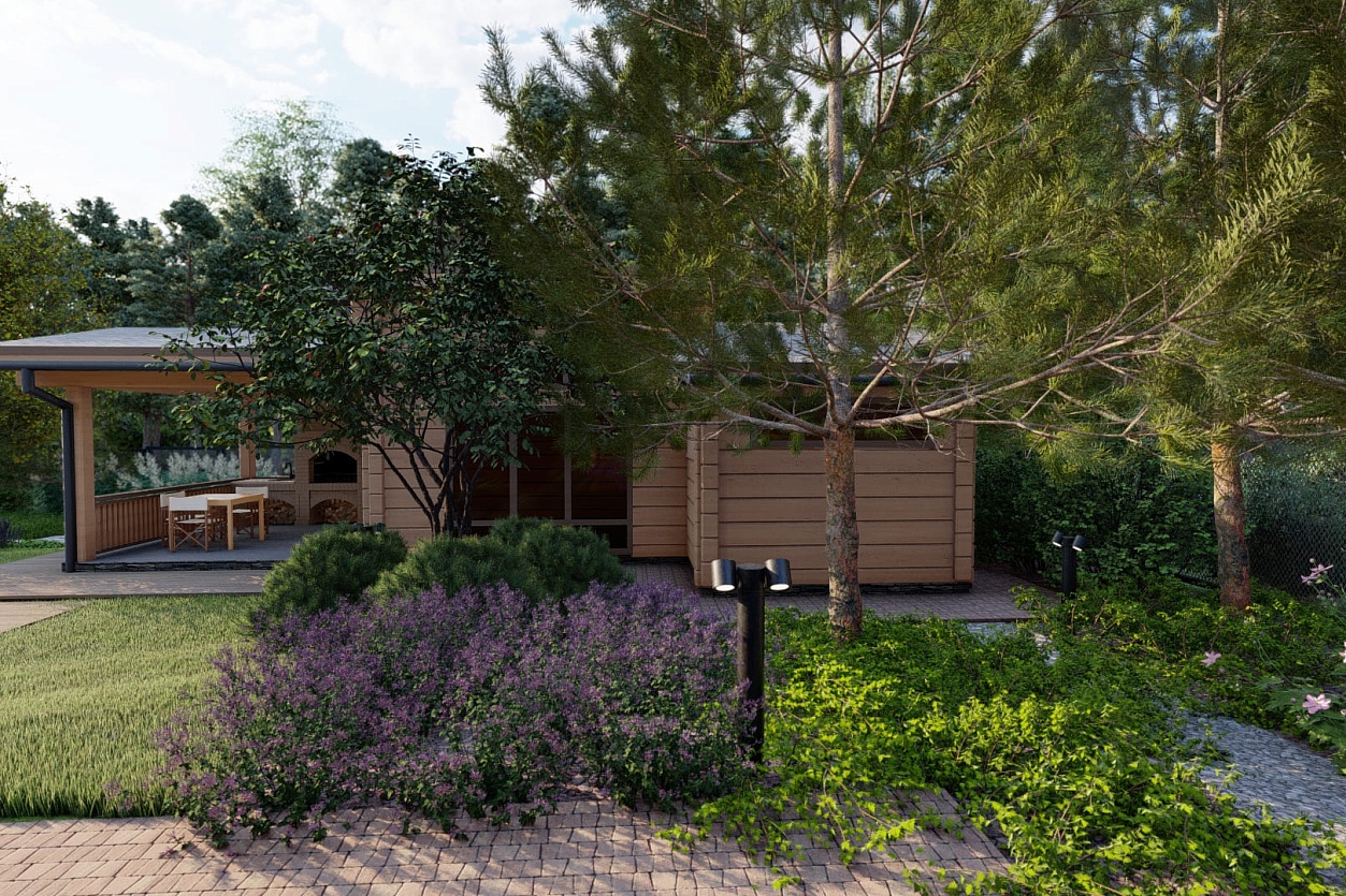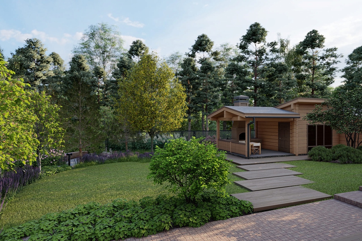 Проектирование и реализация частного сада. Создать пространство, гармонично вписанное в природный ландшафт, с элементами лесной тематики.