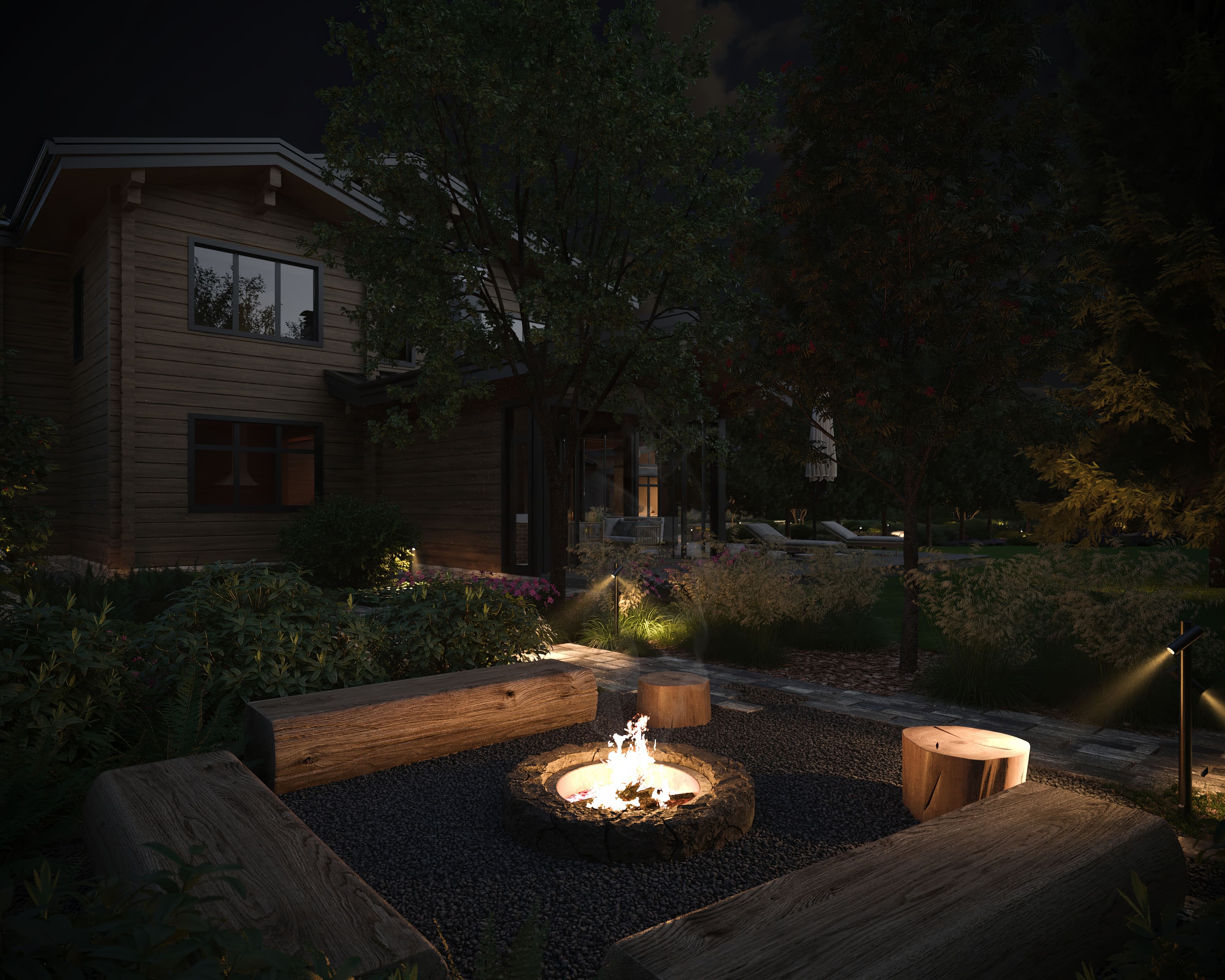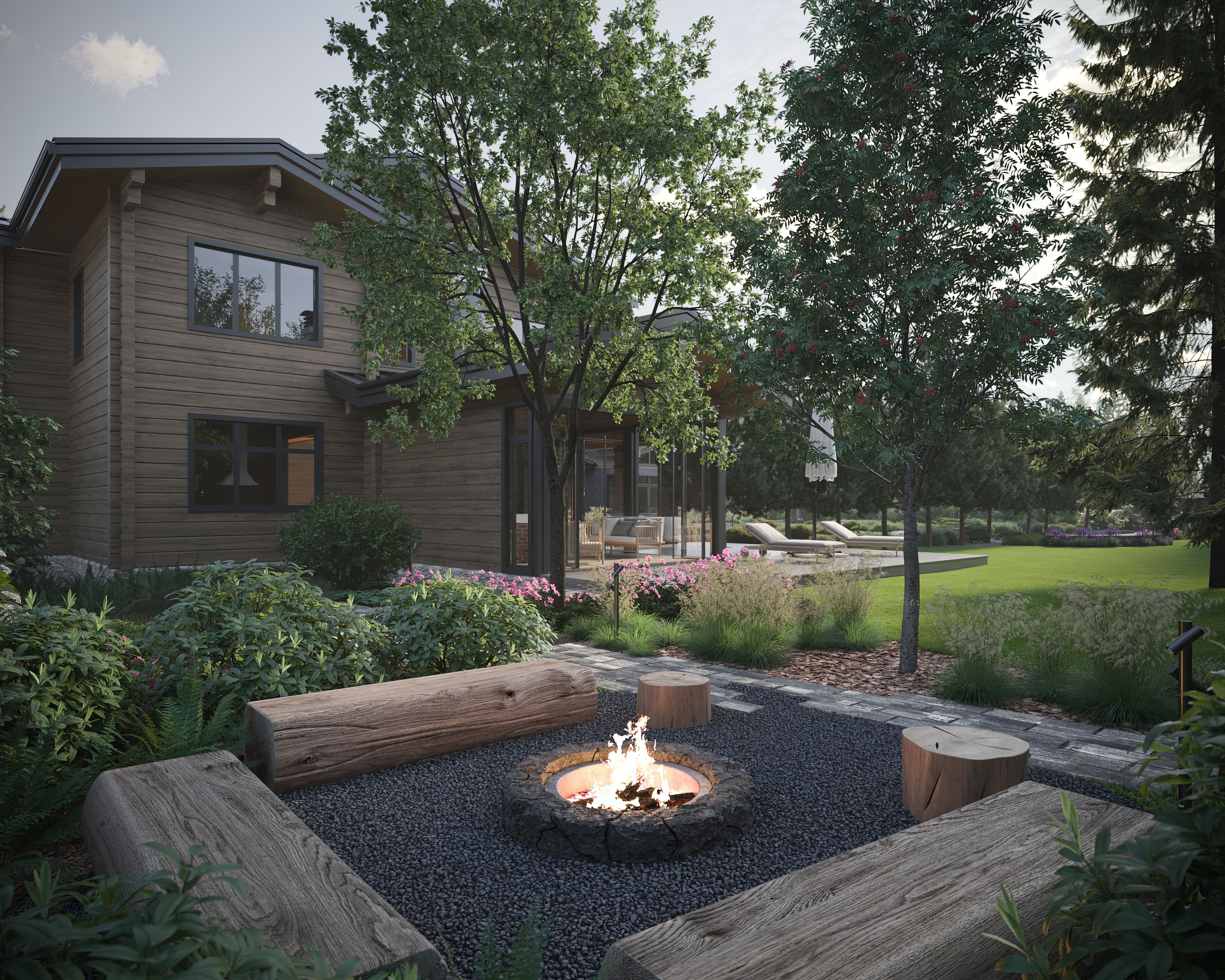 Основная задача заключалась в создании современного, уютного пространства, органично вписанного в природную среду. Мы стремились сохранить каждое дерево, спроектировать зону очага, сохранить опушку, а также создать террасу у гостевого дома и реализовать выход в лес.