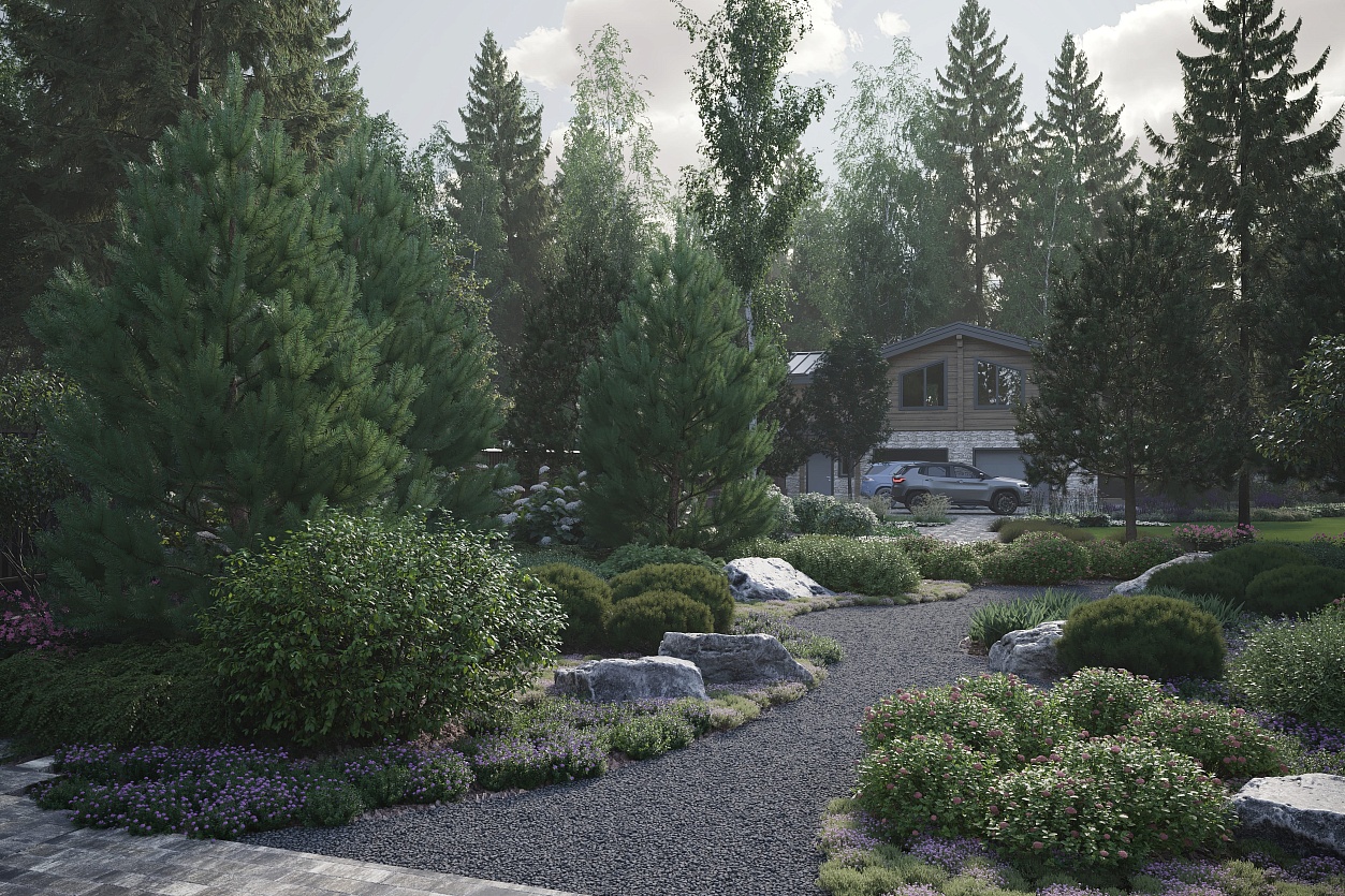 Проектирование и реализация частного сада. Основная задача заключалась в создании современного, уютного пространства, органично вписанного в природную среду.