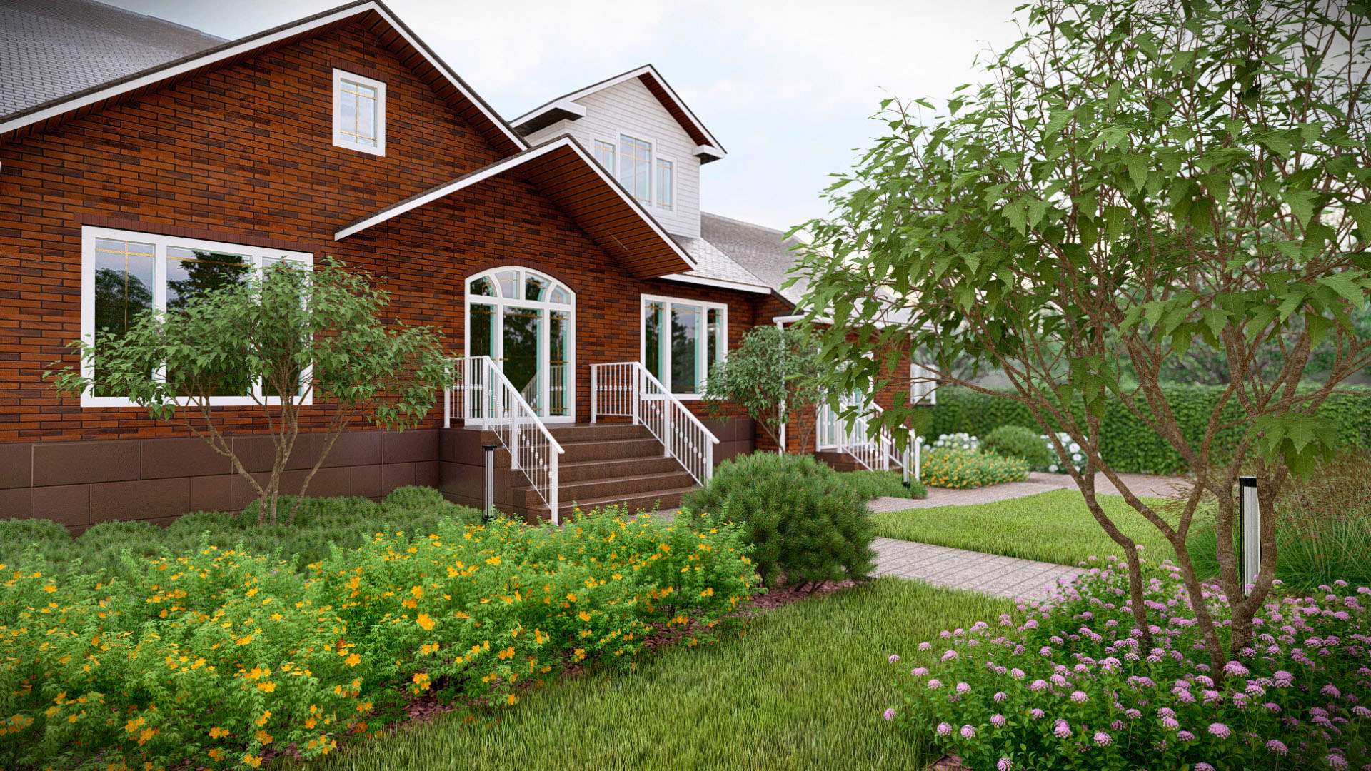 Данный проект был разработан с учетом строгих требований заказчика, для которого важна функциональность и эстетика. Участок имеет перепад рельефа, что добавляет интереса к ландшафту и позволяет создать различные уровни и зоны. Проект отличается строгостью и геометричностью, с минималистичным подходом к выбору растений. Основная цветовая гамма — рыже-коричневая, что создает теплую и уютную атмосферу, но одновременно с этим сужает выбор растительности.